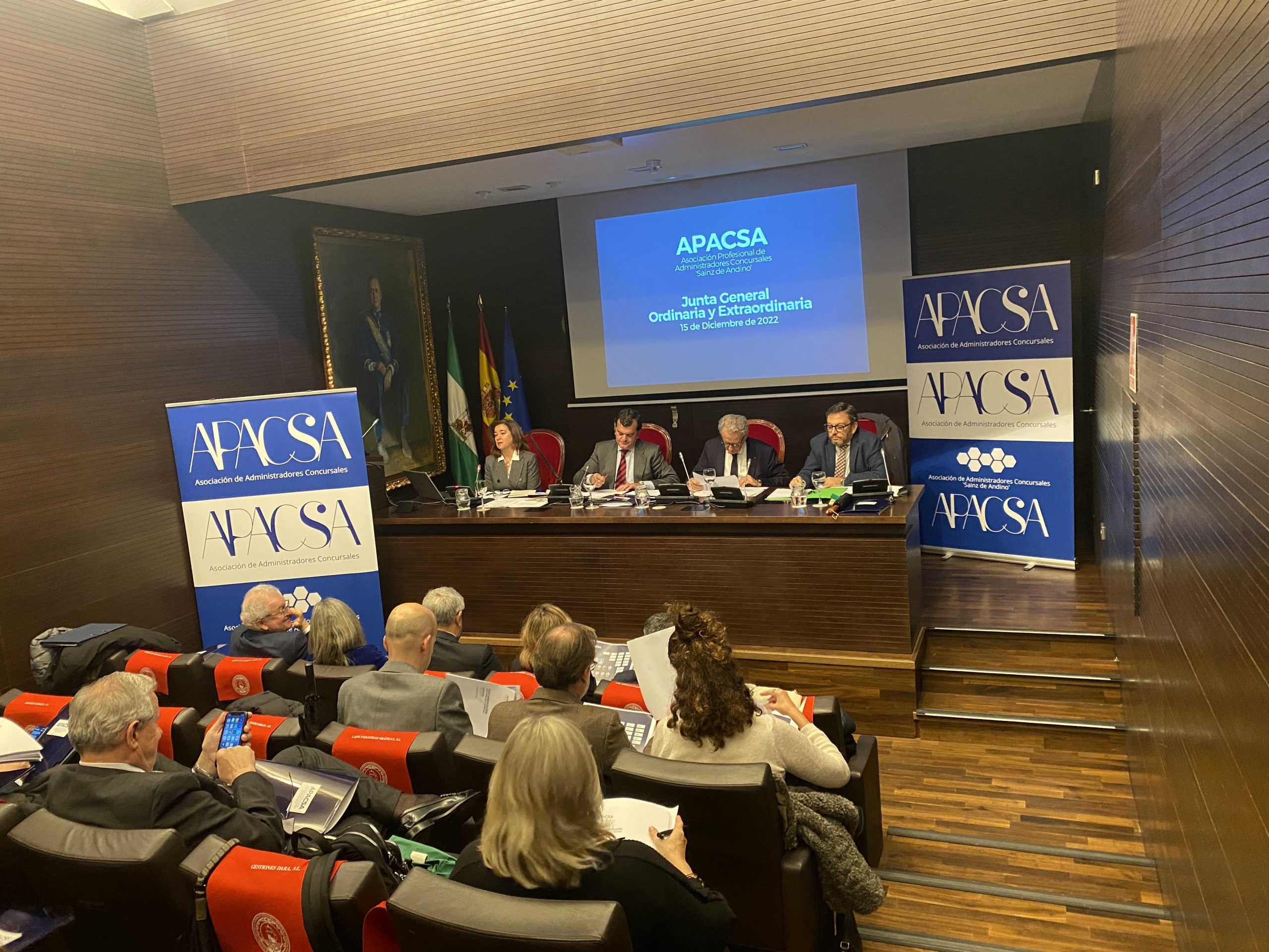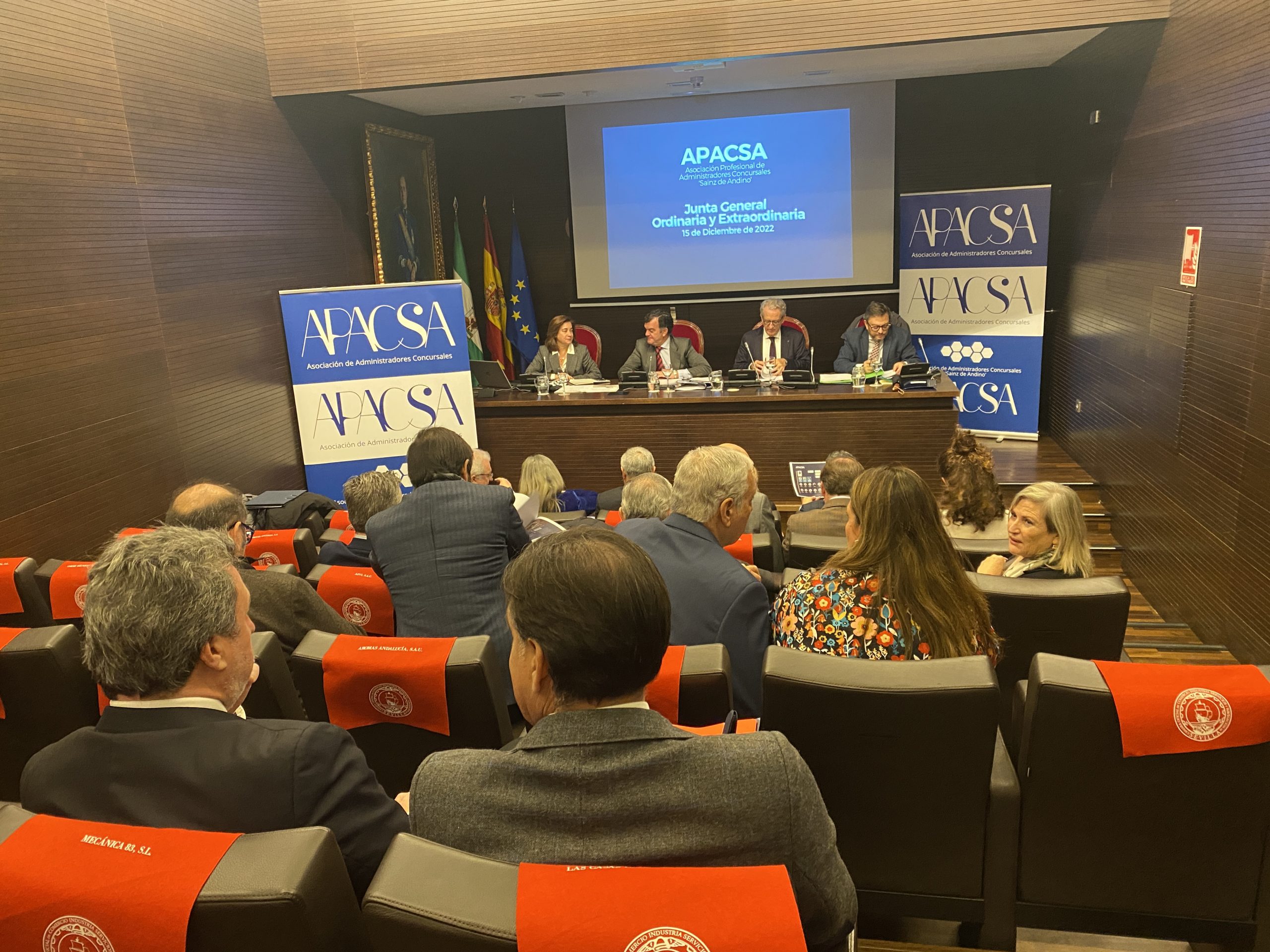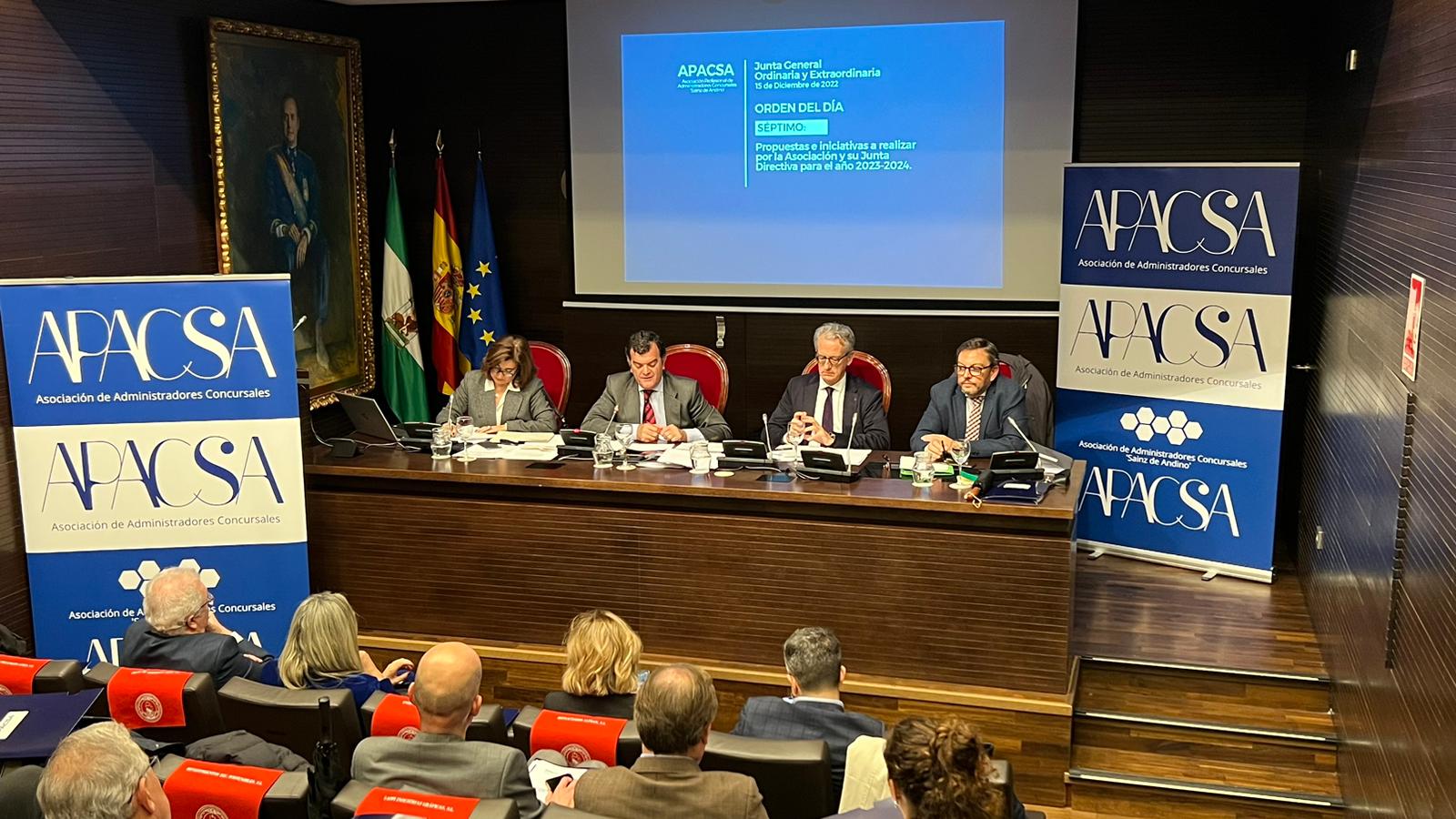 La Asociación Profesional de Administradores Concursales ‘Sainz de Andino’ (APACSA) ha celebrado este jueves, 15 de diciembre, en la Cámara de Comercio de Sevilla la Asamblea General Ordinaria y Extraordinaria. En ella se han expuesto las acciones más destacada que nuestra Asociación ha desarrollado durante el último año y se ha aprobado el programa de actividades para este próximo año 2023, en el que destaca el refuerzo de las acciones de formación y de los servicios a las personas que forman parte de nuestra organización.
