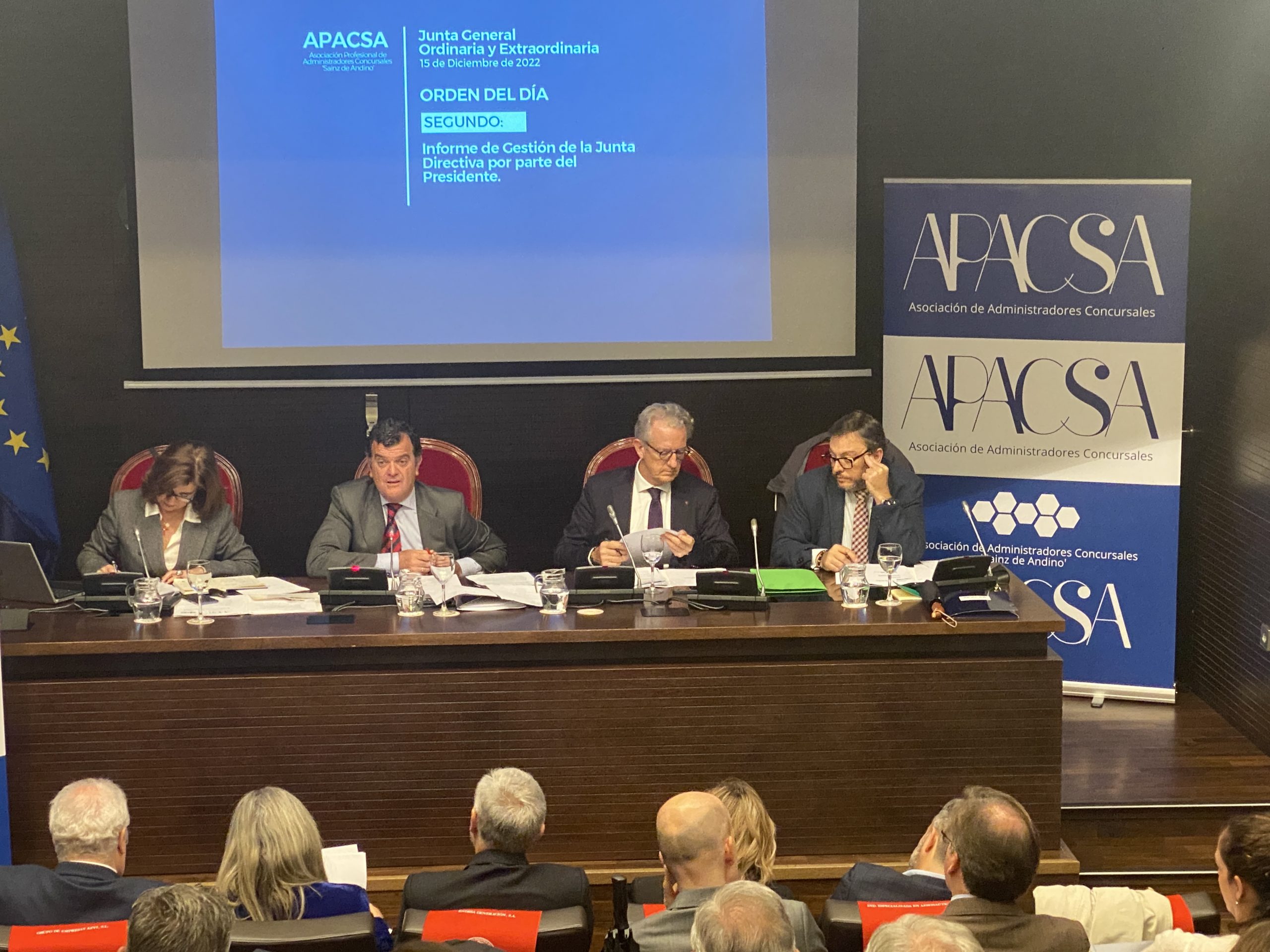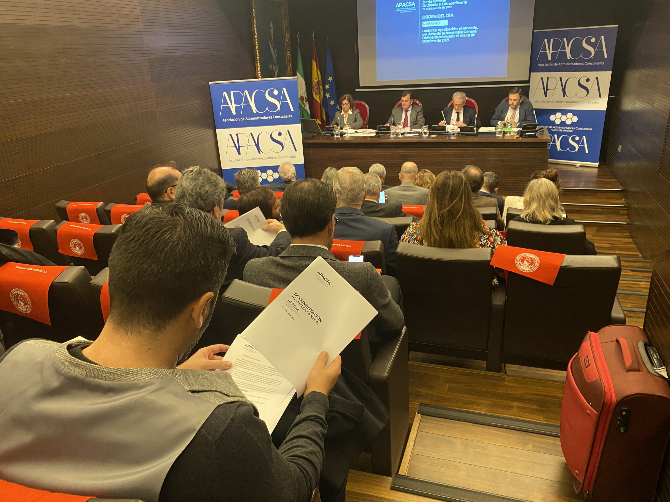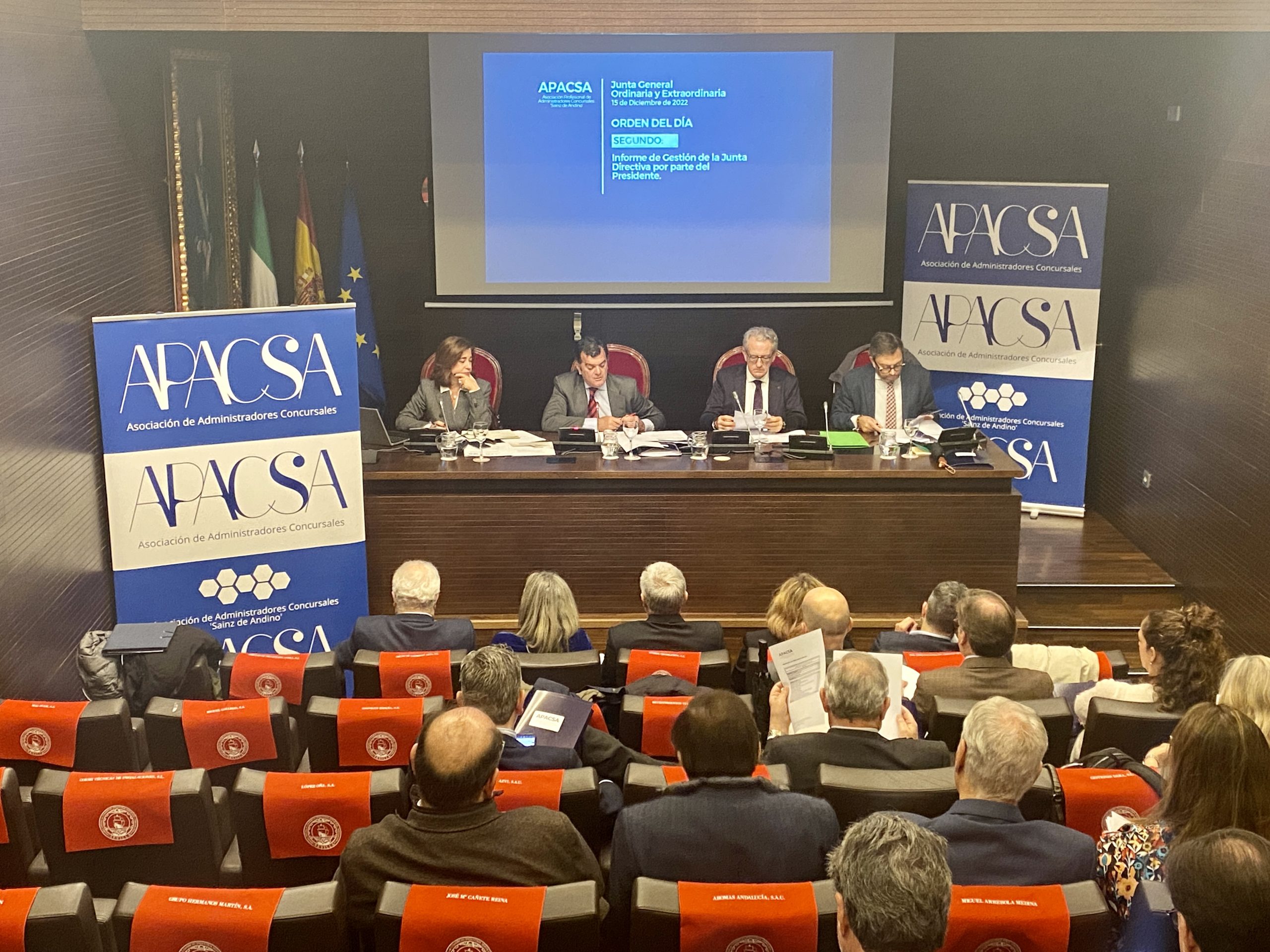 La Asociación Profesional de Administradores Concursales ‘Sainz de Andino’ (APACSA) ha celebrado este jueves, 15 de diciembre, en la Cámara de Comercio de Sevilla la Asamblea General Ordinaria y Extraordinaria. En ella se han expuesto las acciones más destacada que nuestra Asociación ha desarrollado durante el último año y se ha aprobado el programa de actividades para este próximo año 2023, en el que destaca el refuerzo de las acciones de formación y de los servicios a las personas que forman parte de nuestra organización.