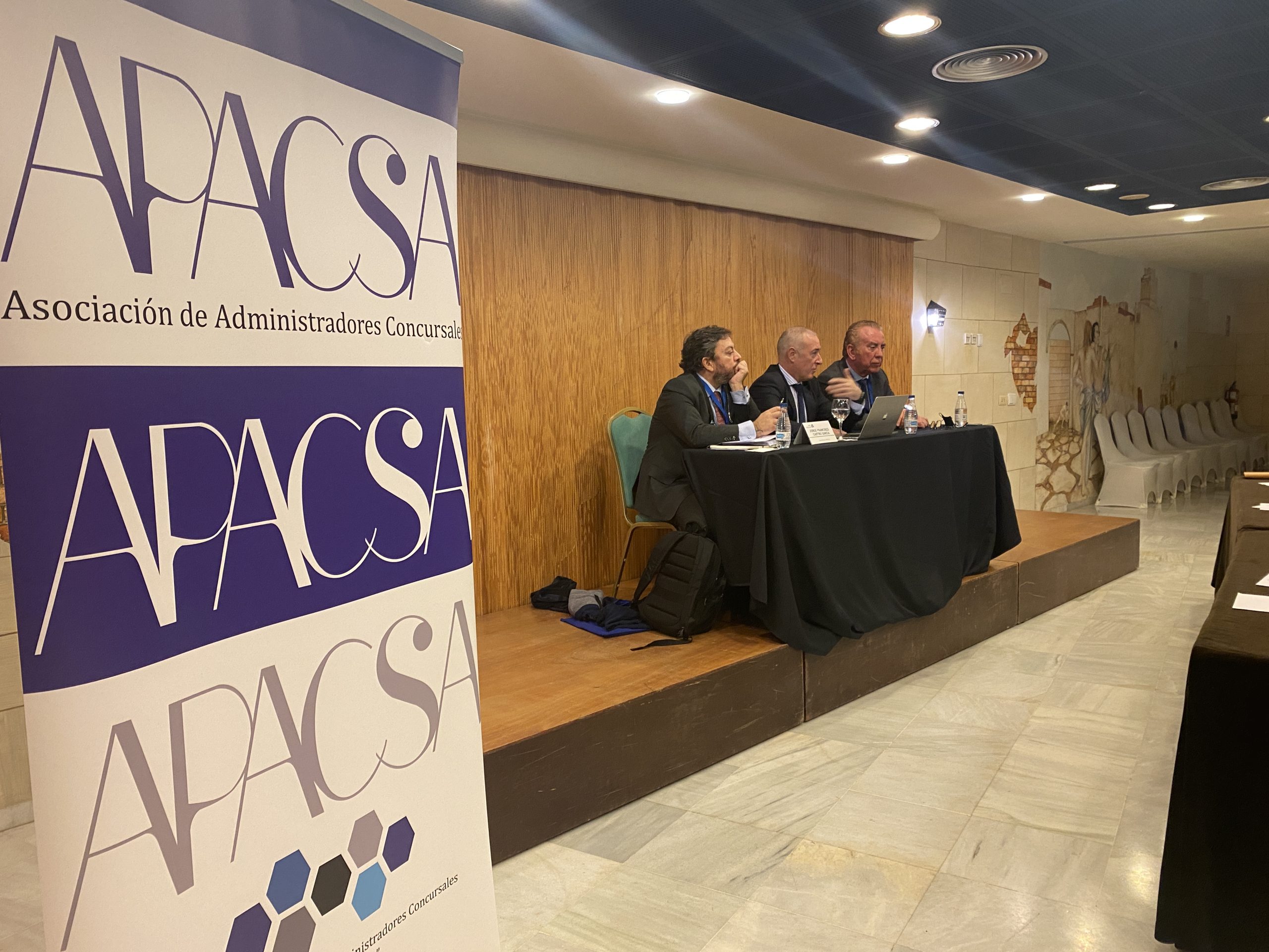 Por último el taller sobre Contabilidad en el concurso de acreedores. Valoración de los activos concursales y masa activa. Planes de reestructuración: Anteproyecto de Ley Concursal contó con la intervención de Juan Carlos Robles Díaz, decano del Colegio de Economistas de Málaga; Juan Luis Gordon Fernández, tesorero APACSA y Eduardo Molina Rodriquez. Presidente del RAJ (ICJCE).